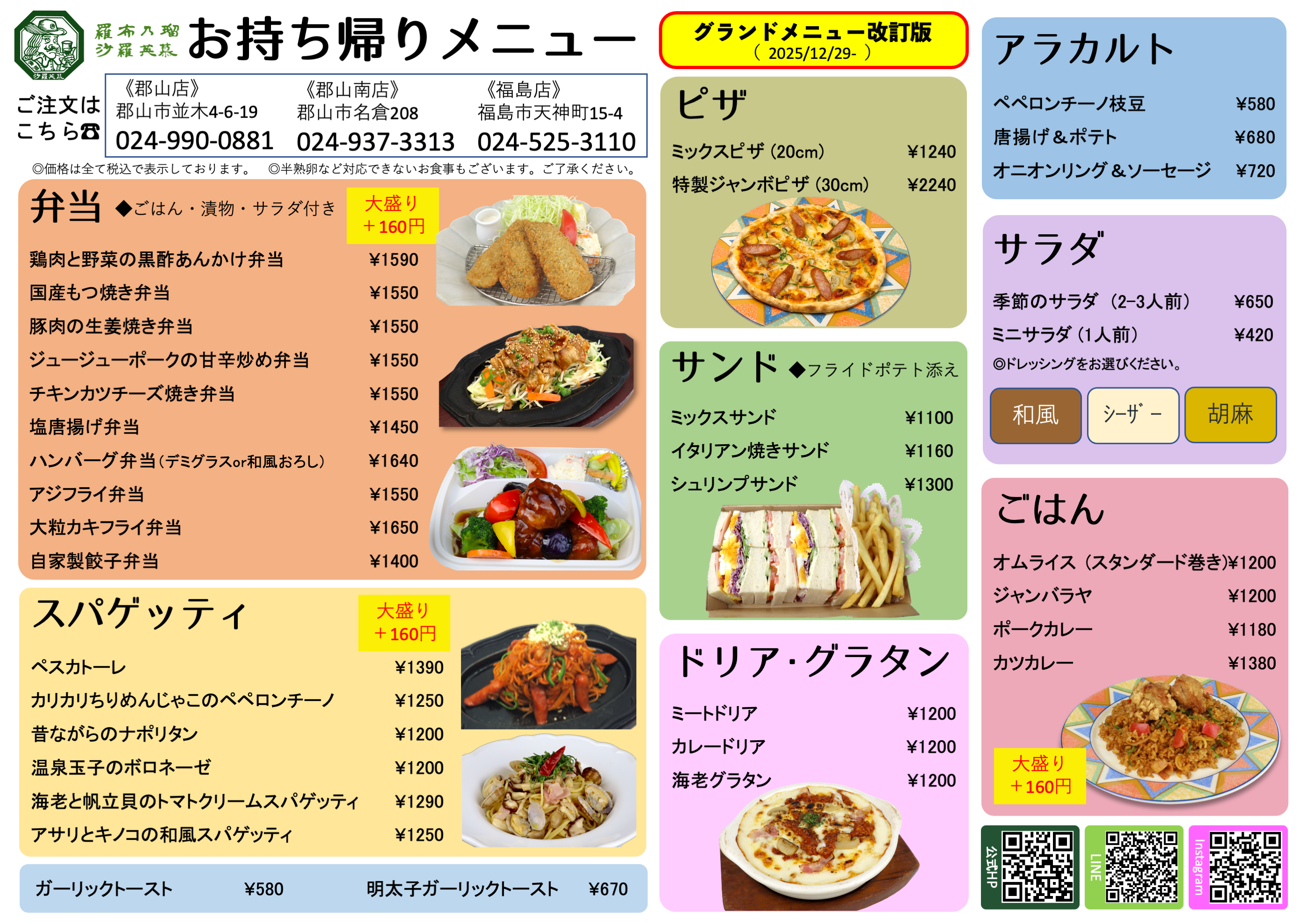 塩唐揚げ定食 ¥1,450 / 大粒カキフライ定食 ¥1,650 / ハンバーグ定食 ¥1,640 / 豚肉の生姜焼き定食 ¥1,550 / チキンカツチーズ定食 ¥1,550 / 国産牛のすき煮定食 ¥2,300 / 麓山高原豚のロースカツ定食 ¥1,750 / 麓山高原豚ジュージューポークの鉄板焼き ¥1,550 / 国産もつ焼き定食 ¥1,550 / 自家製餃子定食 ¥1,400