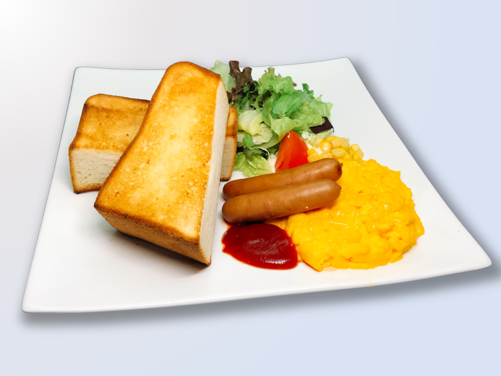 ガーリックトースト ¥580 / 明太子ガーリックトースト ¥670 / 厚切りトースト(サラダ添え) ¥700 / イタリアン焼きサンド(フライドポテト添え) ¥1,160 / シュリンプサンド ¥1300 / クロックムッシュ ¥900 / シナモントースト ¥800 / 特製ハンバーガー ¥1200