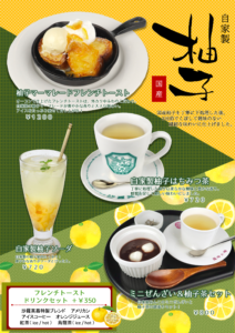 寒い日にぴったりの柚子茶やフレンチトーストなどをご用意しました🤲 柚子ジャムがなくなり次第終了いたしますのでお早めにどうぞ🥰